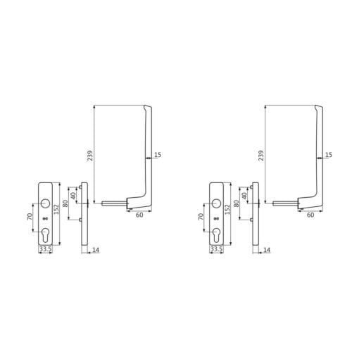 Betreffend set is toepasbaar bij o.a. GU, MACO, SIEGENIA EN AGB hefschuifpuien. Deze hendel uit de hefschuifbeslag serie is ook verkrijgbaar als wit gu beslag.